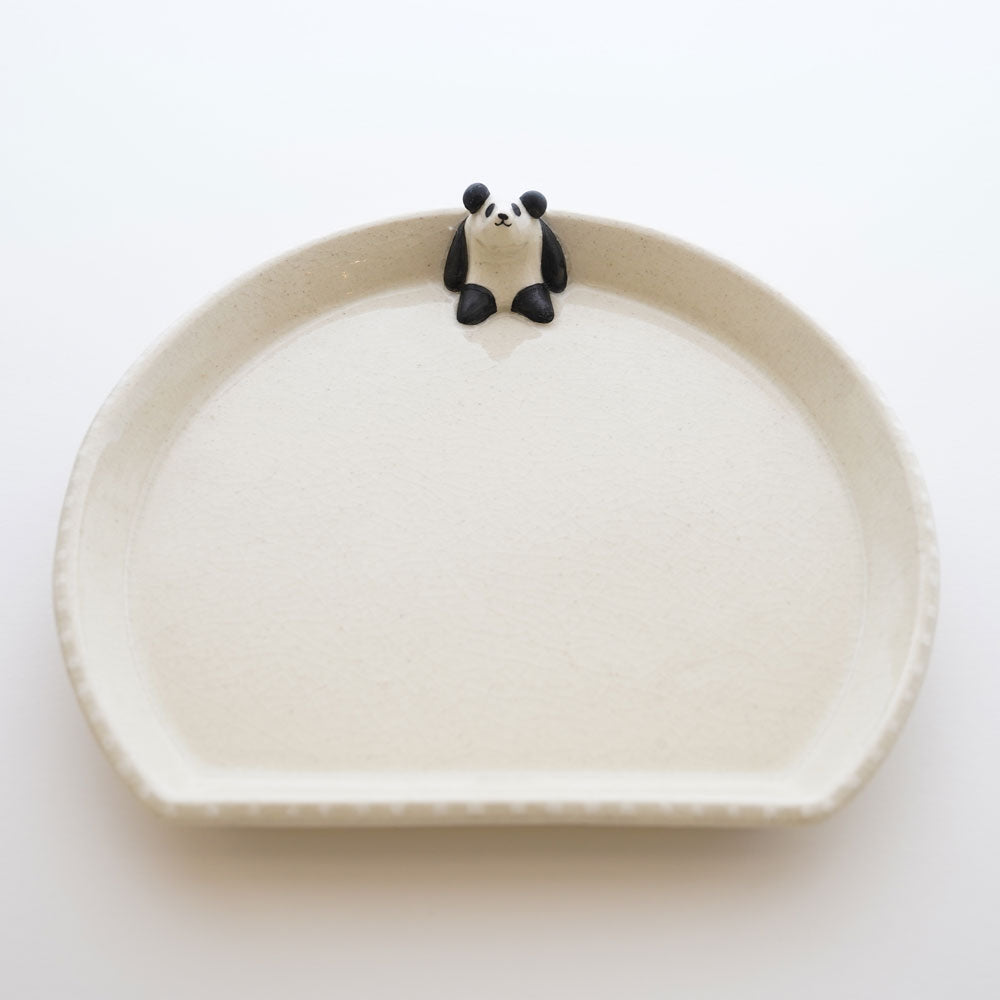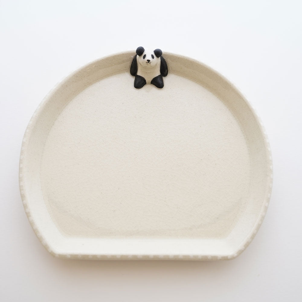日本製のこの皿は、作家の手によって丁寧に作られ、愛らしいパンダのデザインが特徴です。