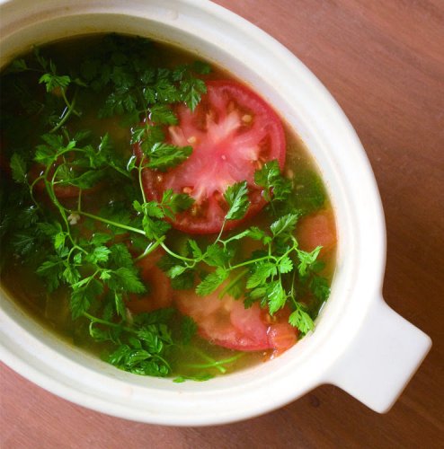 A simple silhouette oval pot with the Italian word for "simmer. It is a convenient size for 2.5 people and can be used in a small oven.
