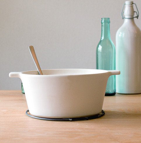 イタリア語でに「煮る」の意味の、シンプルなシルエットの楕円鍋。使い勝手の良い2.5人サイズで、小型オーブンでも使用可能です。