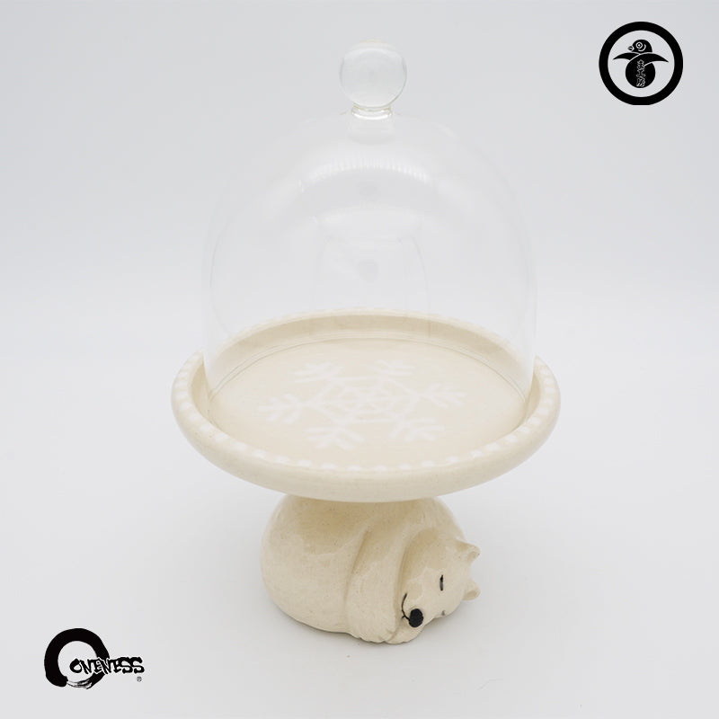 The Polar Bear Cake Dome from Makobo Studio features a sleeping polar bear gently supporting a glass dome, as if quietly watching over your sweets.