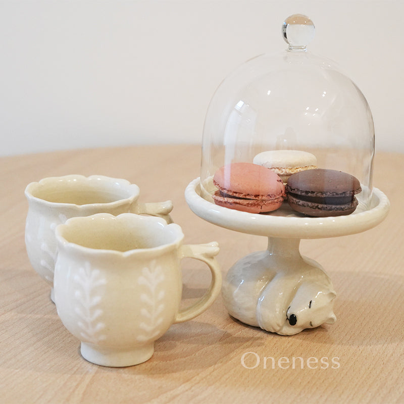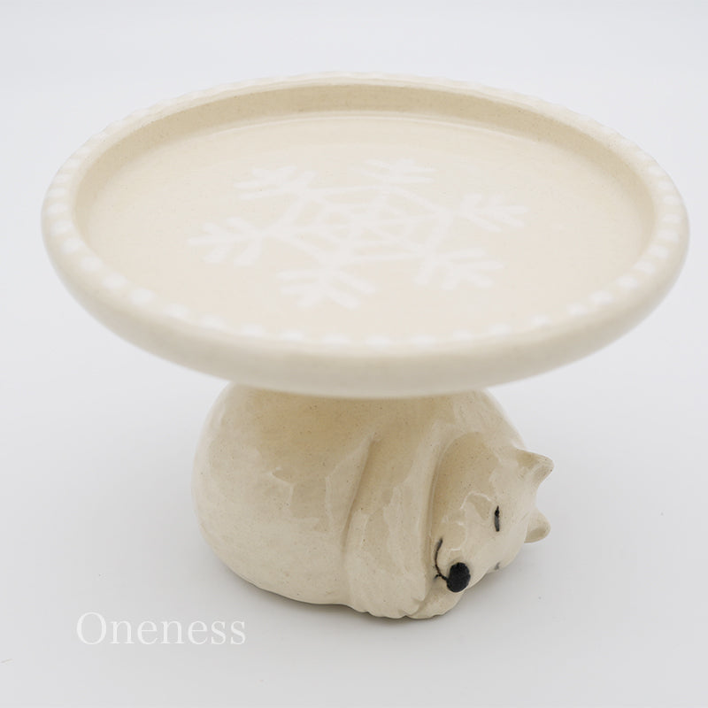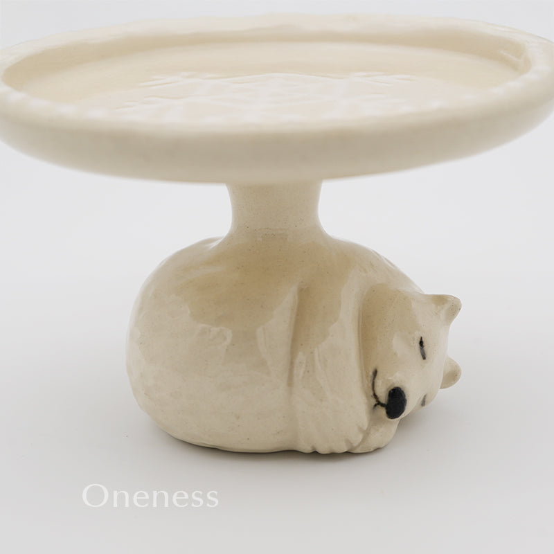 すやすや眠るしろくまがケーキドームをそっと支える、愛らしいデザインのテーブルウェアです。