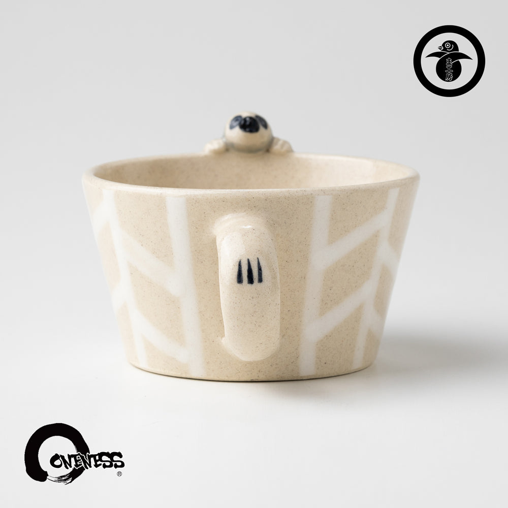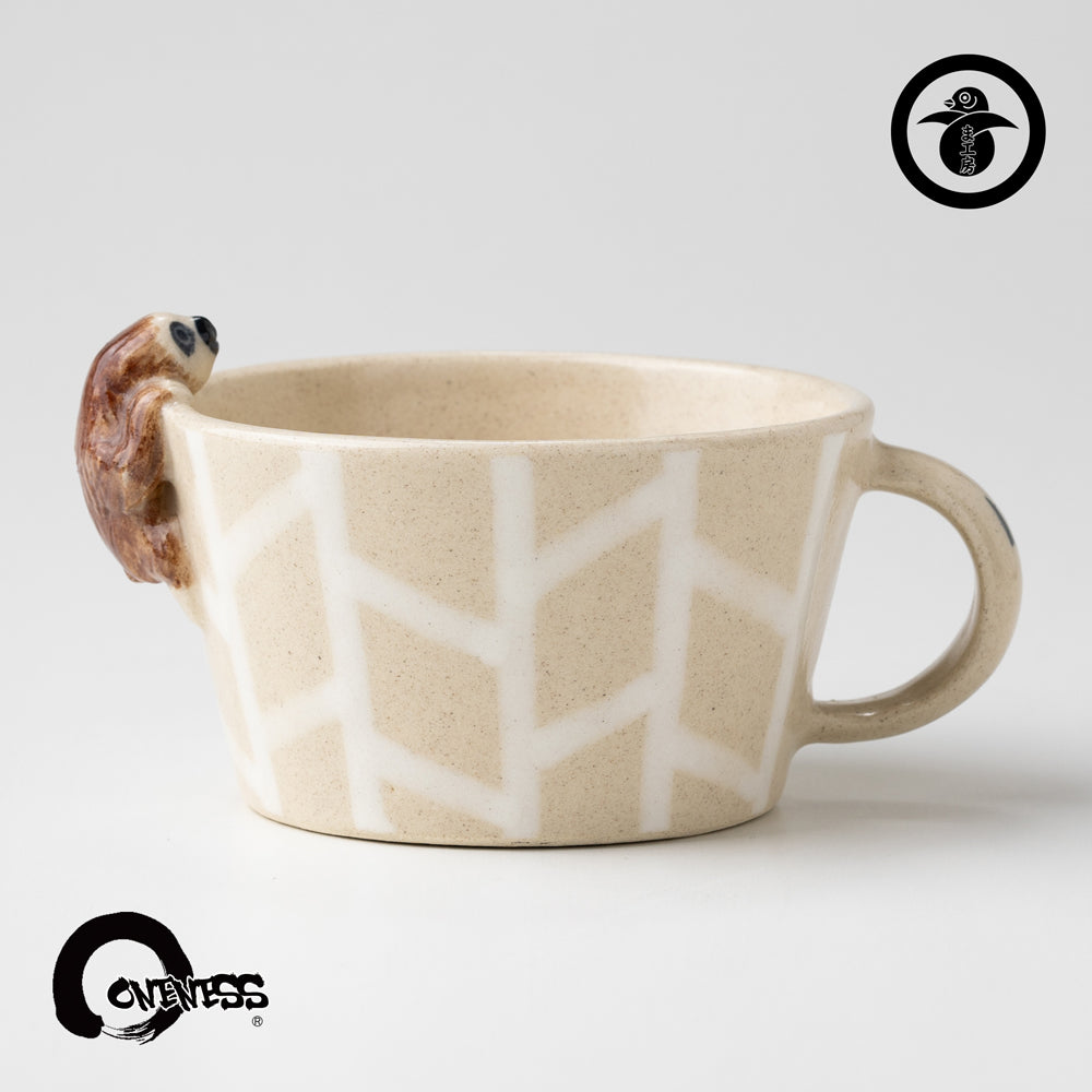 ま工房的樹懶湯杯是由日本陶藝作家牧田亮手工製作的陶器馬克杯,充滿手作溫度與質感。杯緣上有立體的樹懶造型懸掛設計,可愛又療癒,是非常有特色的動物造型杯。