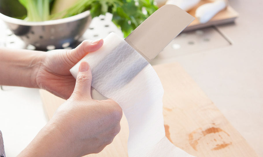 ゆりのブレードは可能な限り薄く仕上げ、食材の抵抗を抑えることで、従来の包丁より小さな力で切れます。