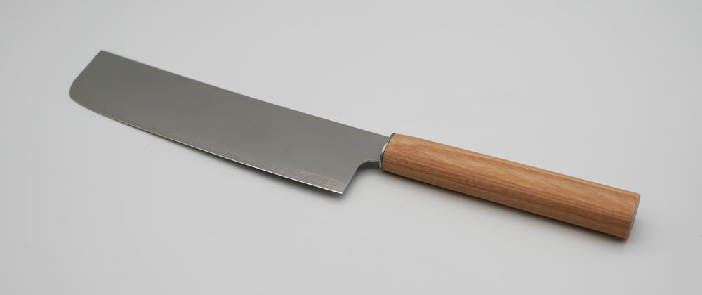 These knives are easy to clean and designed for the enjoyment of Japanese cooking. Available in a variety of shapes, including santoku knives, nakiri knives, and de-eba knives, these knives are finished in a simple, easy-to-use style. The blades are made of three-layer steel, with rust-resistant stainless steel on both sides and a core made of molybdenum-vanadium stainless steel for long-lasting sharpness. To make the blade water-resistant, a mouthpiece is provided between the handle and the blade to prevent water ingress.