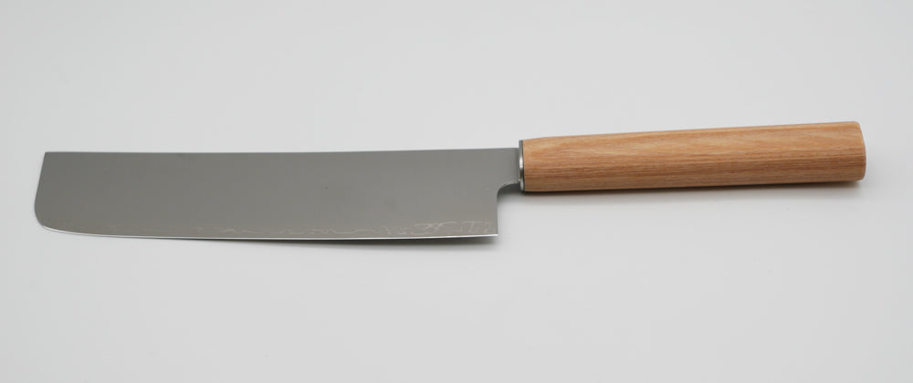 这些易于清洁的刀具专为享受日式烹饪而设计。 它们有各种形状,包括三德刀、akiri 刀和 daba 刀,做工简洁,易于使用。 刀片由三层钢制成,两面为防锈不锈钢,刀芯由钼钒不锈钢制成,锋利持久。 为了防水,在手柄和刀片之间还设置了一个口罩,以防止进水。