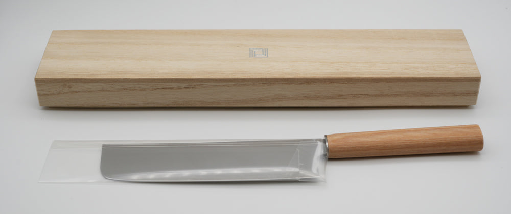 Paulownia wood has a beautiful grain and has been very popular in Japan as a material for furniture because of its moisture-proof and fire-resistant properties. Since ancient times, there has been a custom in Japan to give a kitchen knife as a gift to celebrate a new beginning or an auspicious occasion. We have prepared a beautiful paulownia box package suitable for sending knives to your loved ones with your best wishes.