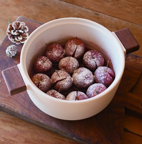This two-handled pot has a gentle and lovely image with a natural wood handle.