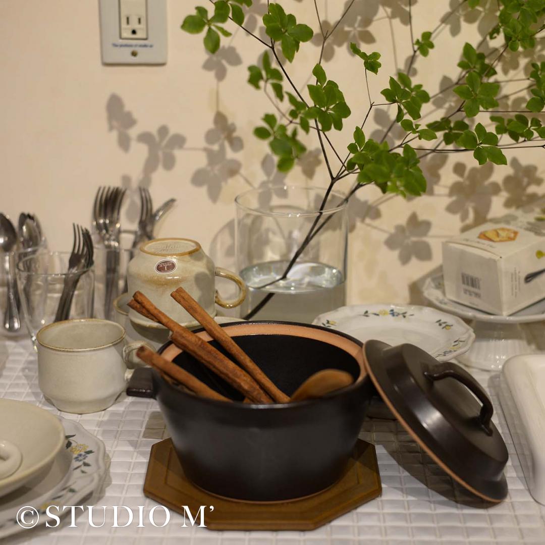 It is a stylish earthenware pot that can be placed on the dining table as it is. It is also highly heat-retentive, so it is recommended to serve it at the dining table to keep food warm.