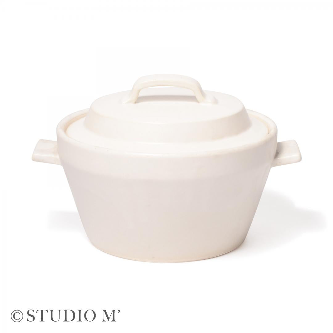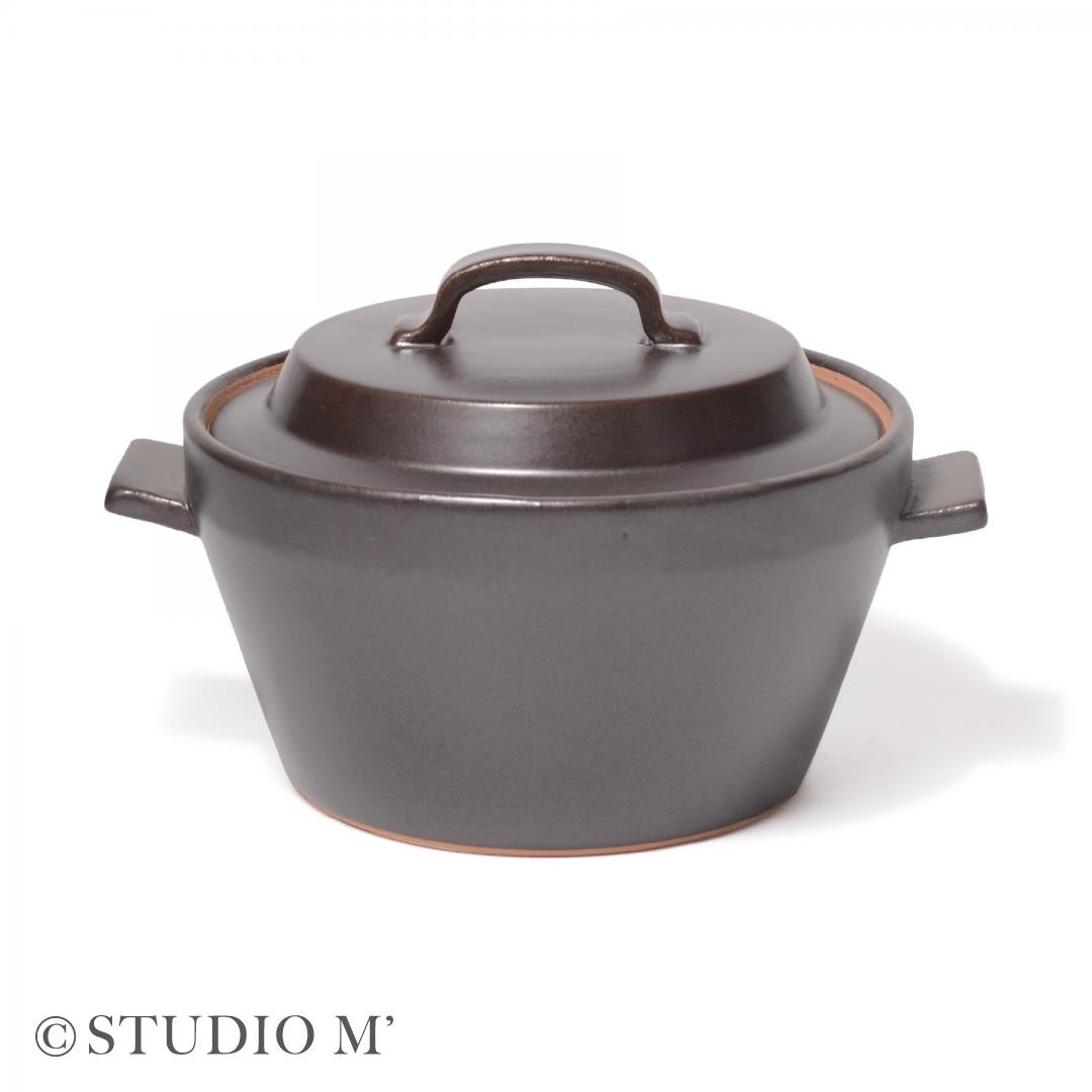 鍋子的造型時尚,但無光澤的斑紋釉讓每個鍋子都有不同的顏色和質感,是一款溫暖的陶鍋。